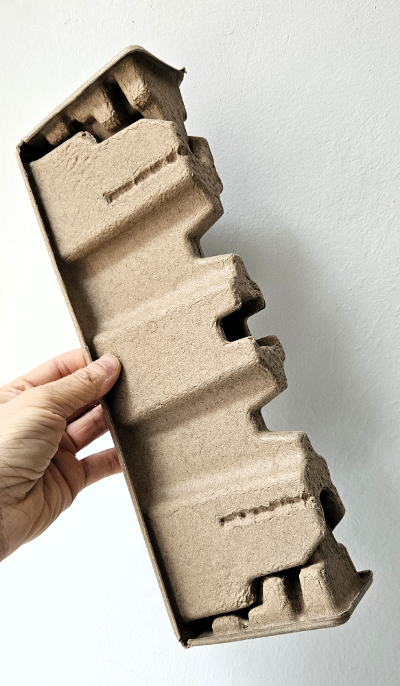 Eine Monitorverpackung bekommt ein neues Leben als florale Skulptur.
